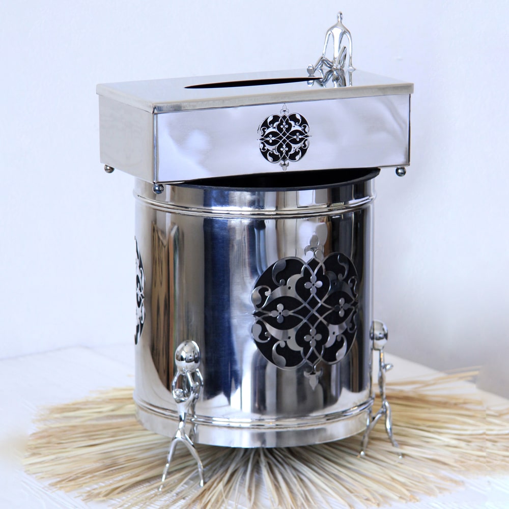 ست سطل و جا دستمال استیل مدل شكوفه ادمک کد SS-8001380015