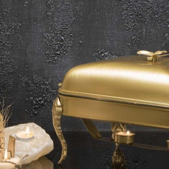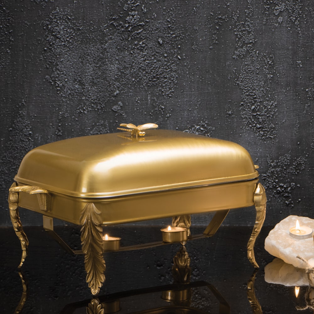 سوفله خوری مستطیل بزرگ مدل پایه برگی برنجی کد 7002-B