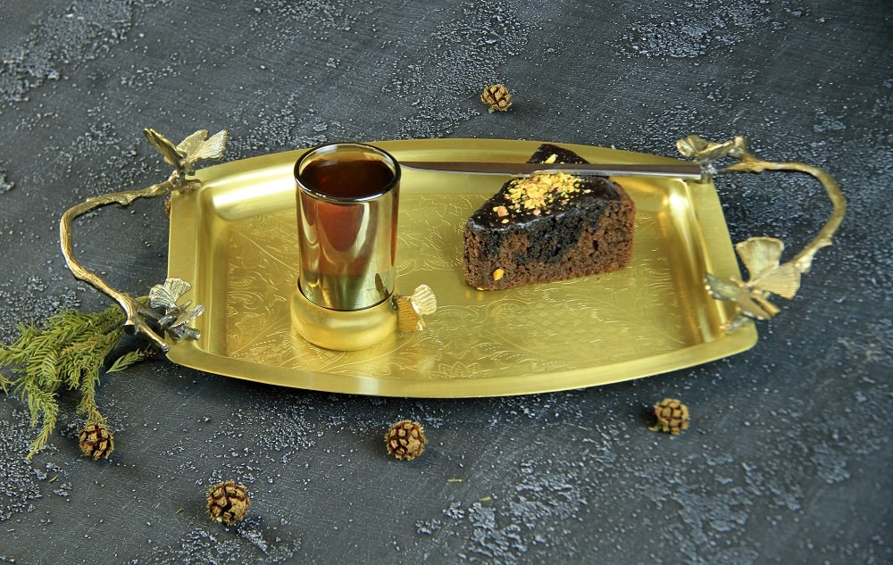 سينی پذیرایی مدل هلالی کوچک برنجی کد B-3080