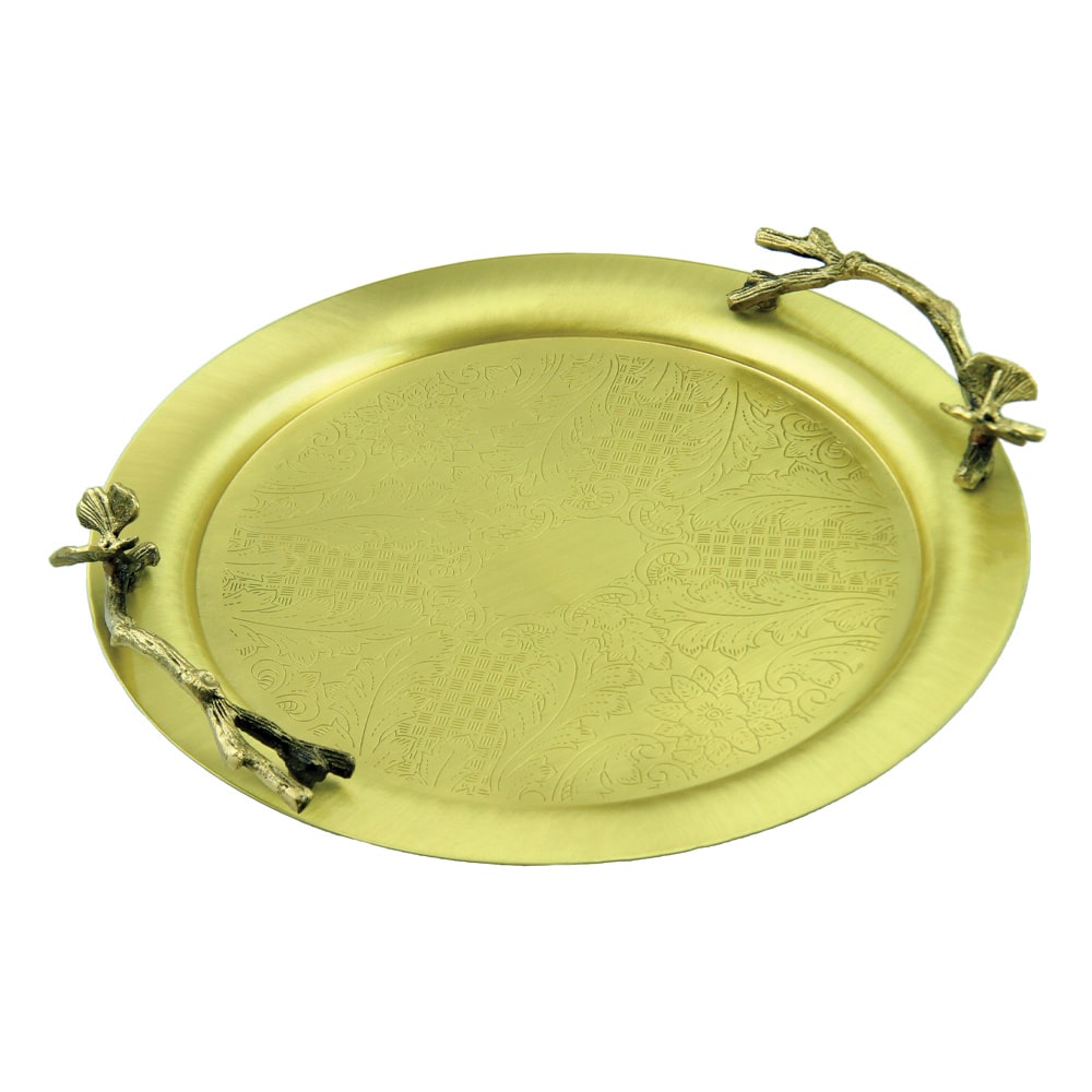 سينی پذیرایی مدل گرد متوسط برنجی کد B-3086