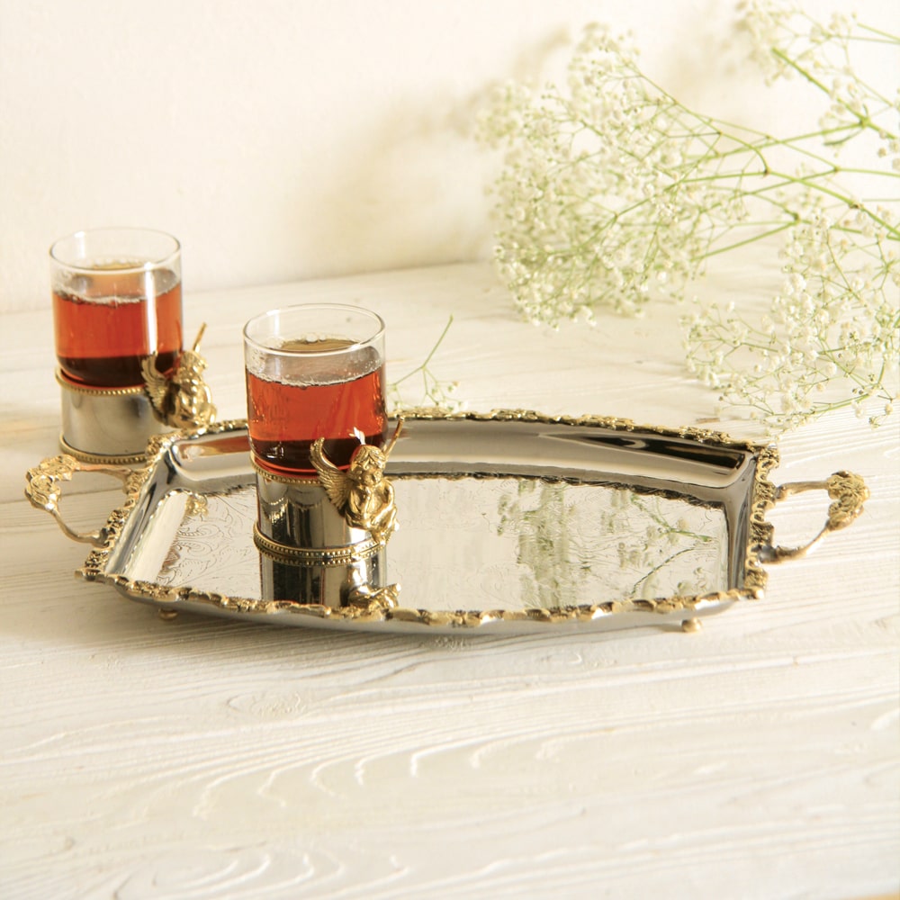 سينی پذیرایی استیل برنجی مدل هلالی کد DB-80081