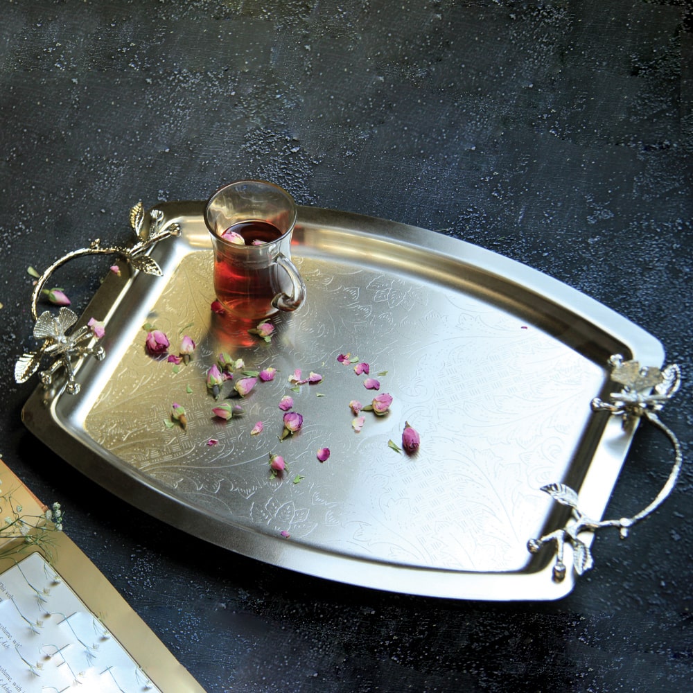 سينی پذیرایی مدل هلالی بزرگ نقرهای کد N-6082